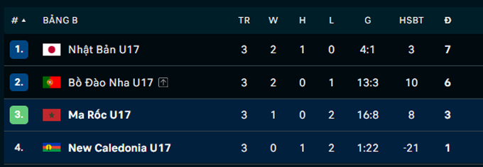 Dù thắng đậm, U17 Morocco vẫn chưa chắc chắn đi tiếp ở giải đấu này. Họ mới có ba điểm, và tấm vé đi tiếp còn phụ thuộc vào kết quả của bảng C và D.