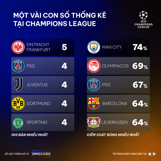 UNISCORE: Những con số biết nói vòng đấu mở màn Champions League 2025/26
