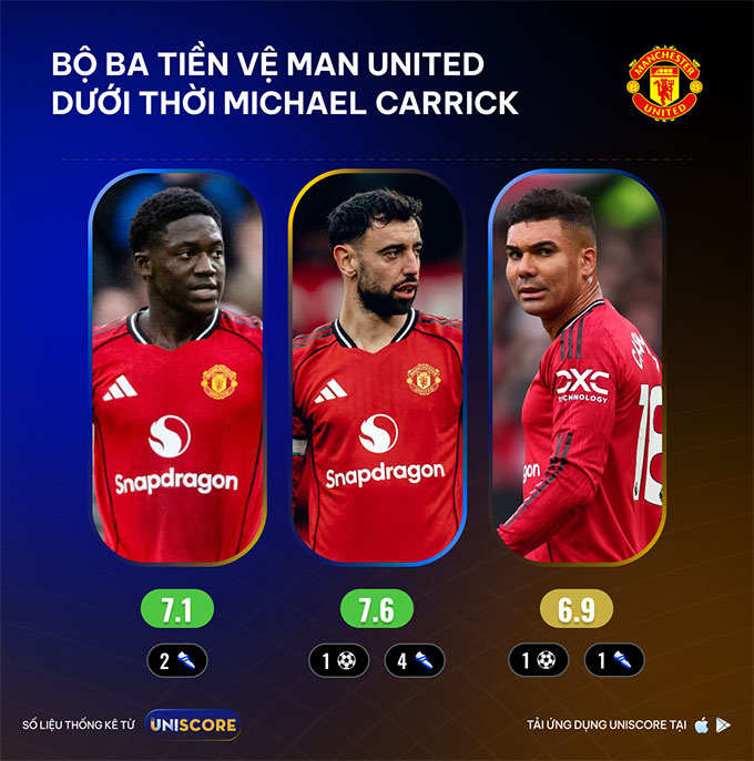 Sự thay đổi trong vai trò của Bruno chỉ phát huy hiệu quả khi tuyến giữa được tái cấu trúc, và Kobbie Mainoo là mảnh ghép quan trọng. Trong nửa đầu mùa giải, Mainoo chỉ được Amorim sử dụng hơn 200 phút. Dưới thời Carrick, tiền vệ 20 tuổi đá chính cả bốn trận lớn, đạt tỷ lệ chuyền chính xác trên 90% và trung bình gần 7 pha tắc bóng, cắt bóng mỗi trận. Sự hiện diện của Mainoo giúp Man United ổn định hơn ở trung tuyến và giảm đáng kể áp lực phòng ngự cho Bruno Fernandes.