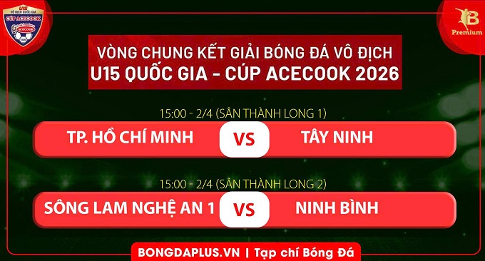 Chiều 2/4, VCK U15 Quốc gia – Cúp Acecook 2026 sẽ chính thức khai mạc trên sân Thành Long (TP.HCM). Sau đó, lượt trận đầu tiên của bảng A sẽ diễn ra. Chủ nhà TP.HCM sẽ đối đầu với Tây Ninh. Ở vòng loại, Tây Ninh đã thể hiện sức mạnh đáng nể khi đứng nhất bảng với chuỗi 8 trận bất bại với hiệu số thắng bại lên đến +27 bàn. Đây sẽ là thách thức không nhỏ đối với chủ nhà TP.HCM vốn không được đánh giá cao, chưa được trải nghiệm nhiều trước khi bước vào vòng chung kết.
