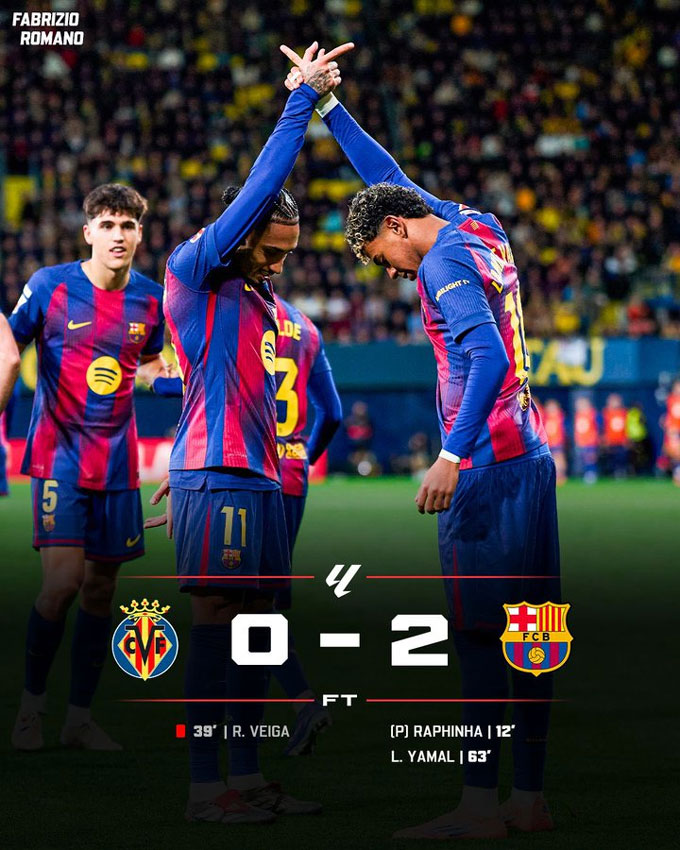 Dù vậy phải tới phút 63, Barca mới cụ thể hoá được ưu thế hơn người. Từ tình huống lộn xộn trong vòng cấm Villarreal, bóng bật ra đến chân De Jong và anh nhả bóng vừa tầm để Yamal tung cú chích mũi giày chuẩn xác, đưa bóng đi vào lưới.