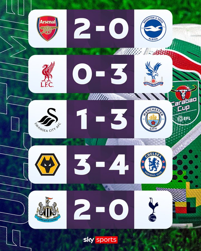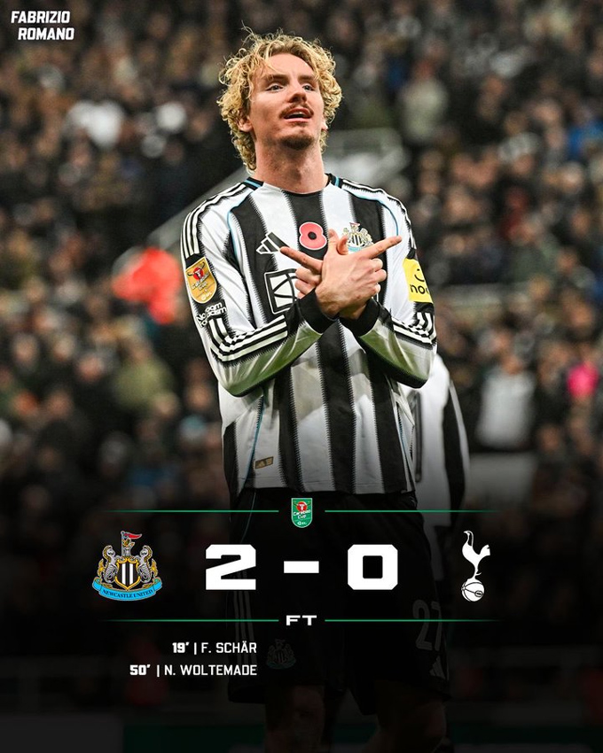 Trong khi đó, nhà đương kim vô địch Newcastle dễ dàng vượt qua Tottenham để giành quyền vào vòng tứ kết League Cup.
