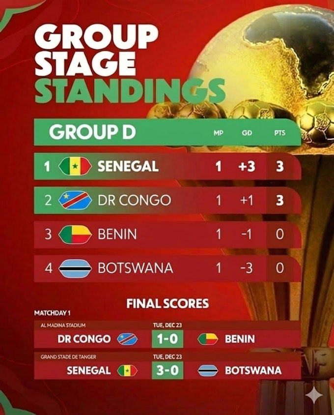 Vòng bảng AFCON 2025: Senegal thắng đậm, Nigeria thắng nhọc
