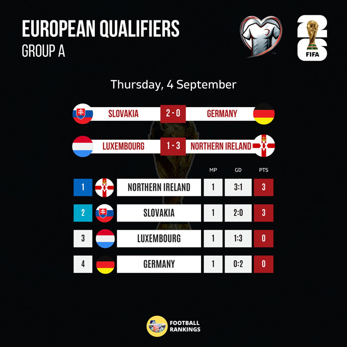 Kết quả 2-0 giúp Slovakia giành trọn 3 điểm và tạm thời tạo nên cú sốc lớn ở bảng A, nơi Đức vốn được xem là ứng viên số một. Thất bại này sẽ là hồi chuông cảnh tỉnh cho thầy trò HLV Nagelsmann nếu muốn sớm giành vé dự World Cup 2026.