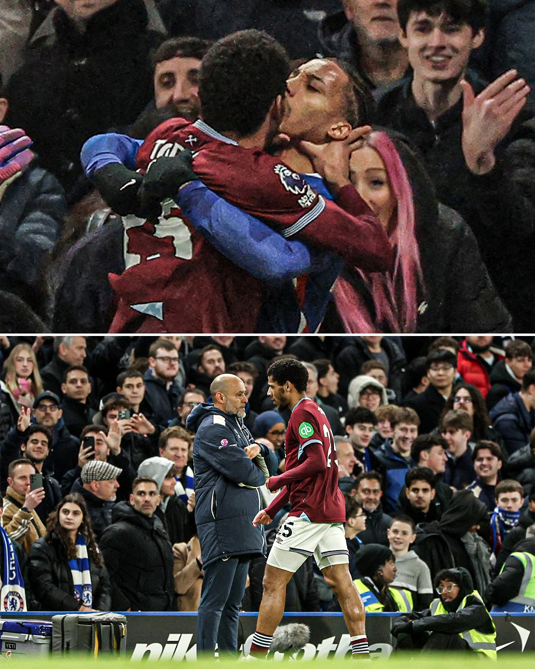Ngay sau đó, Jean-Clair Todibo đã không giữ được bình tĩnh. Trung vệ người Pháp ghì chặt Joao Pedro vào bảng quảng cáo sát đường biên, đặt cả hai tay lên vùng cổ của tiền đạo Chelsea ngay trước khán đài cổ động viên đội chủ nhà.