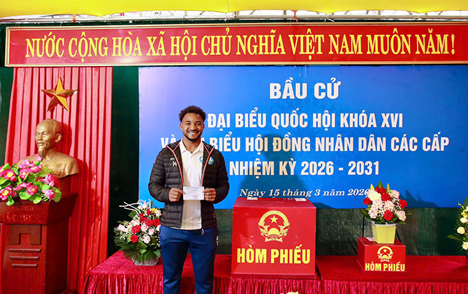 Xuất hiện tại khu vực bỏ phiếu từ sớm, tiền đạo Nguyễn Xuân Son bày tỏ sự hào hứng và tự hào khi cầm trên tay tấm thẻ cử tri của mình. Anh chia sẻ: “Đây là khoảnh khắc rất ý nghĩa đối với bản thân và gia đình, bởi sau quá trình sinh sống, thi đấu và gắn bó với bóng đá Việt Nam, đi bầu cử là niềm vinh dự lớn”.