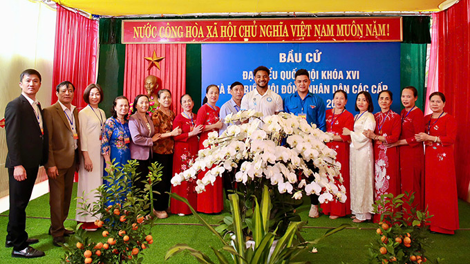 Sự xuất hiện của cầu thủ Nguyễn Xuân Son đã thu hút sự quan tâm của nhiều cử tri, đặc biệt là các em nhỏ và người hâm mộ bóng đá.
